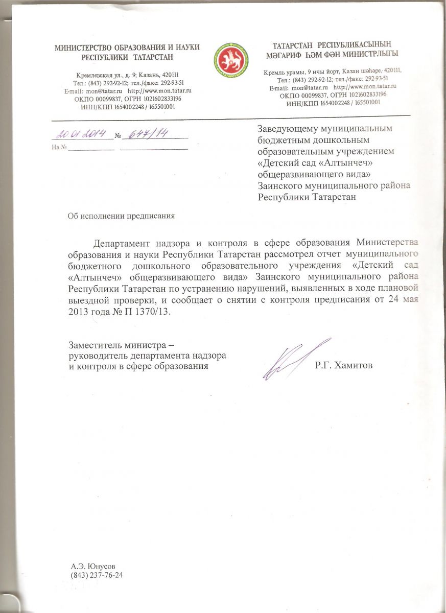 ПИСЬМО ОБРНАДЗОРА О СНЯТИИ ПРЕДПИСАНИЯ