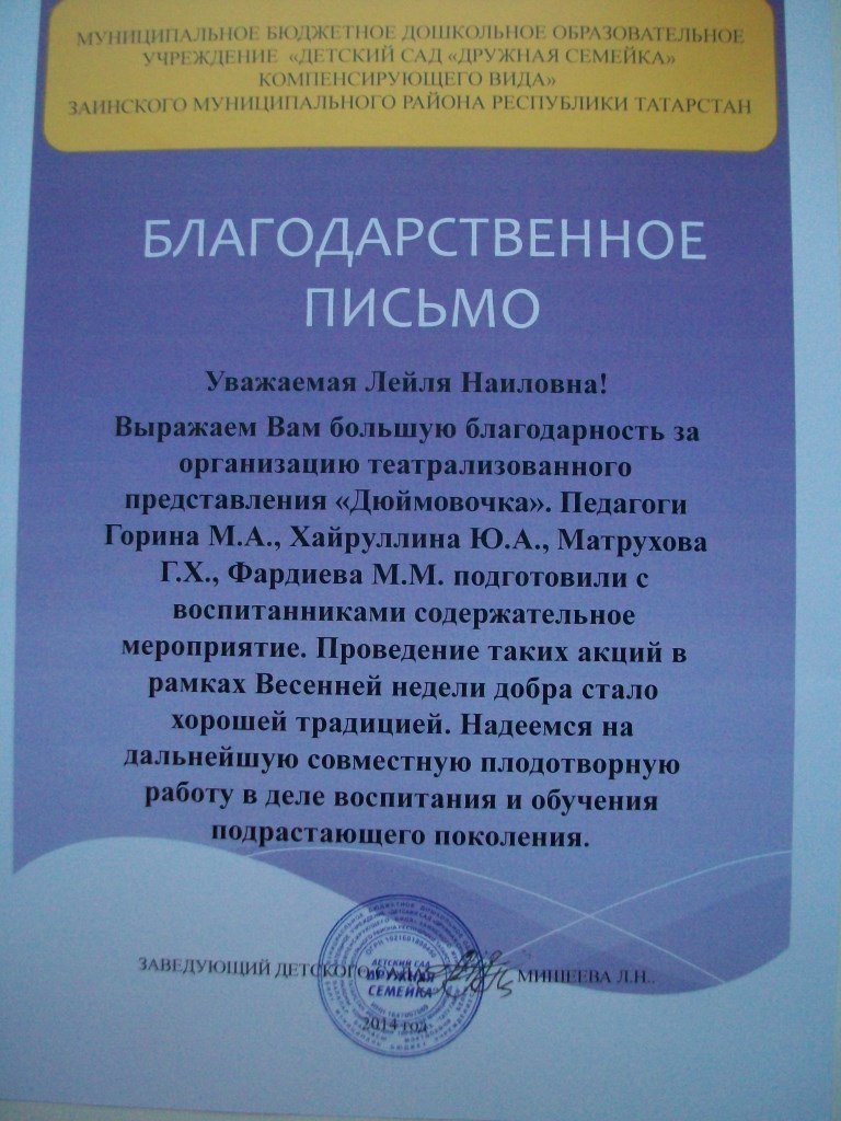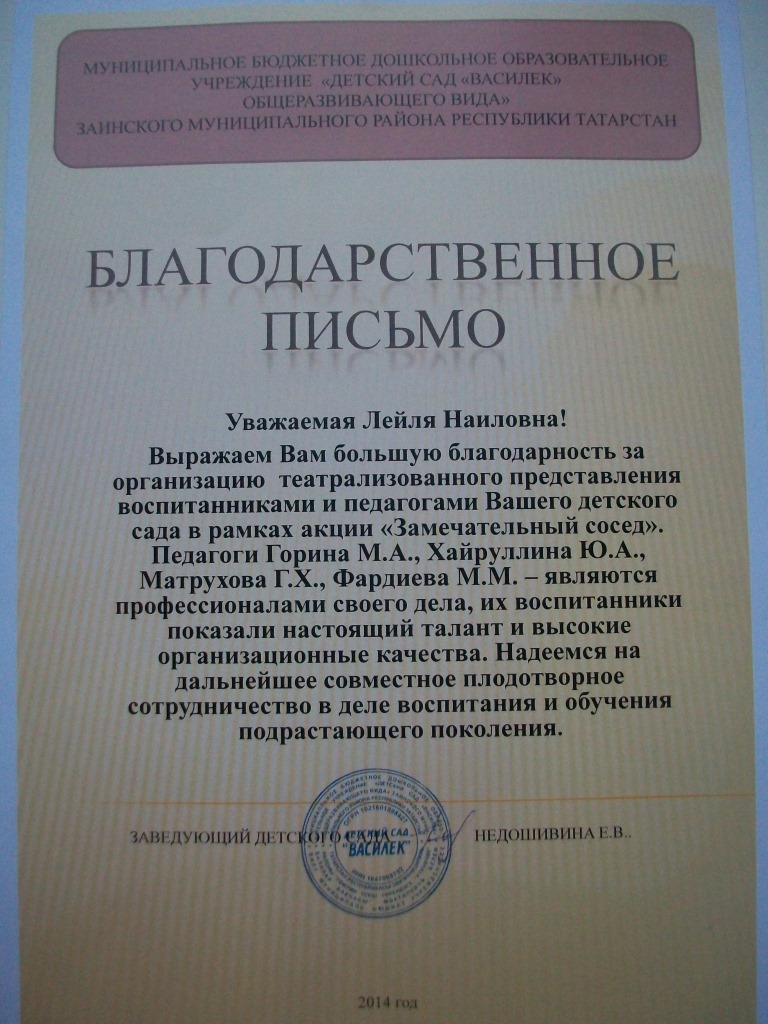 БЛАГОДАРСТВЕННОЕ ПИСЬМО ВАСИЛЕК