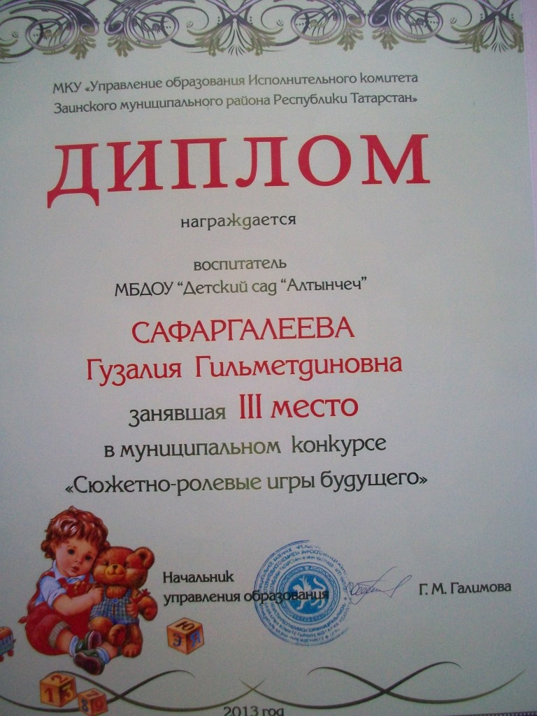 ДИПЛОМ ЗА КОНКУРС "СЮЖЕТНО-РОЛЕВЫЕ ИГРЫ БУДУЩЕГО"