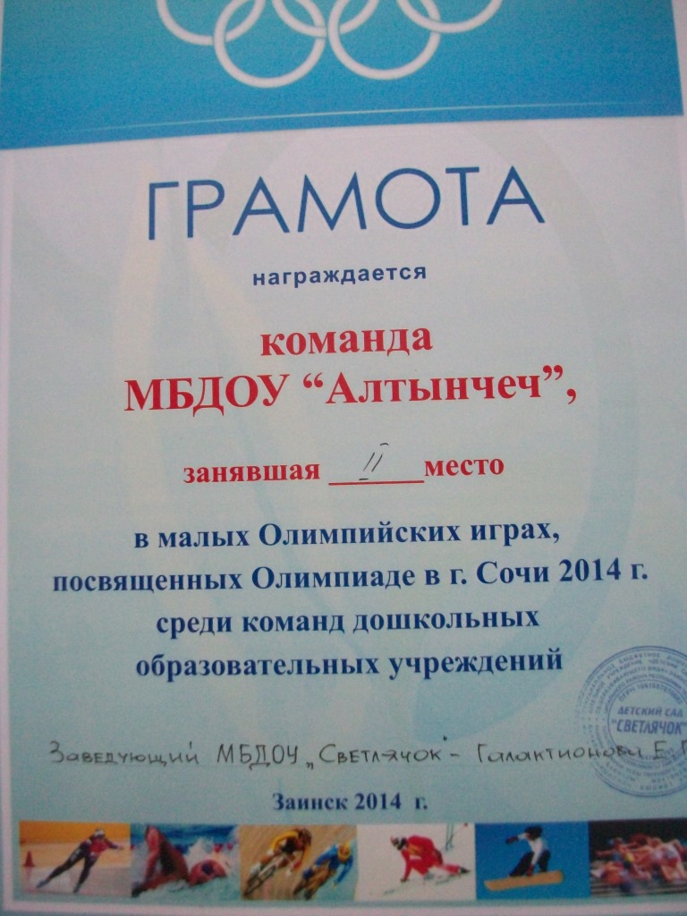ДИПЛОМ ЗА ВТОРОЕ МЕСТО В МАЛЫХ ОЛИМПИЙСКИХ ИГРАХ