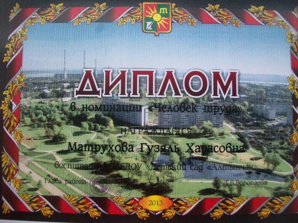ДИПЛОМ ЗА ПОБЕДУ В НОМИНАЦИИ "ЧЕЛОВЕК ТРУДА"