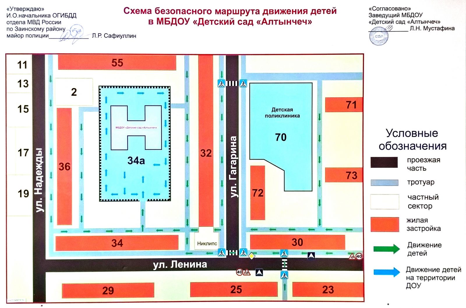 СХЕМА БЕЗОПАСНОГО ДВИЖЕНИЯ МАРШРУТА ДВИЖЕНИЯ ДЕТЕЙ В МБДОУ ДЕТСКИЙ САД АЛТЫНЧЕЧ