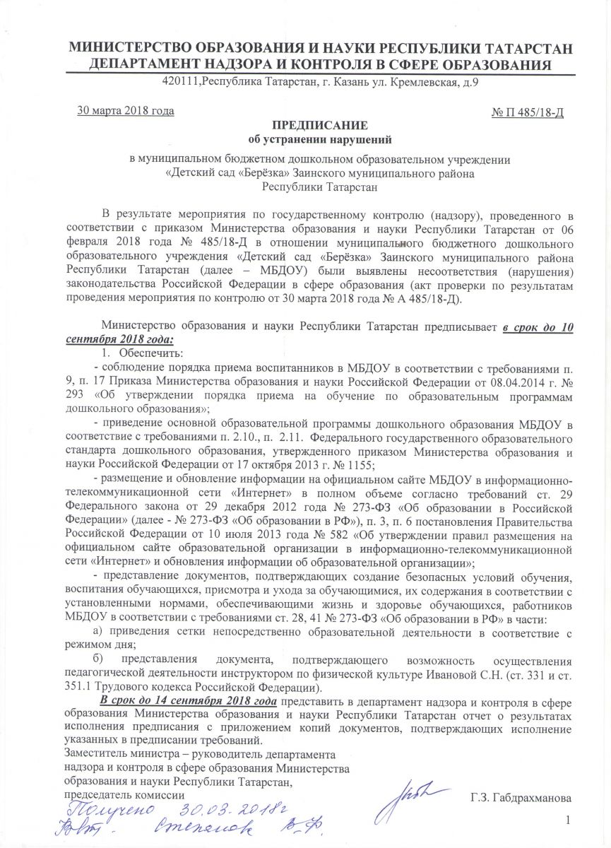 Устав МБДОУ "Детский сад "Берёзка" Заинского муниципального района РТ