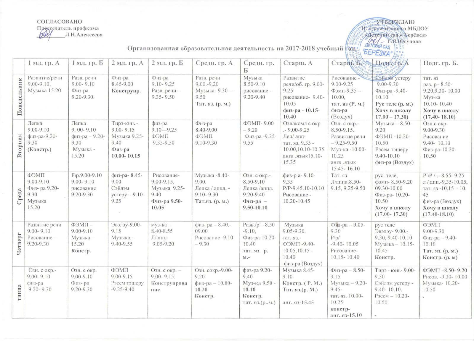Организованная образовательная деятельность на 2017-2018 учебный год