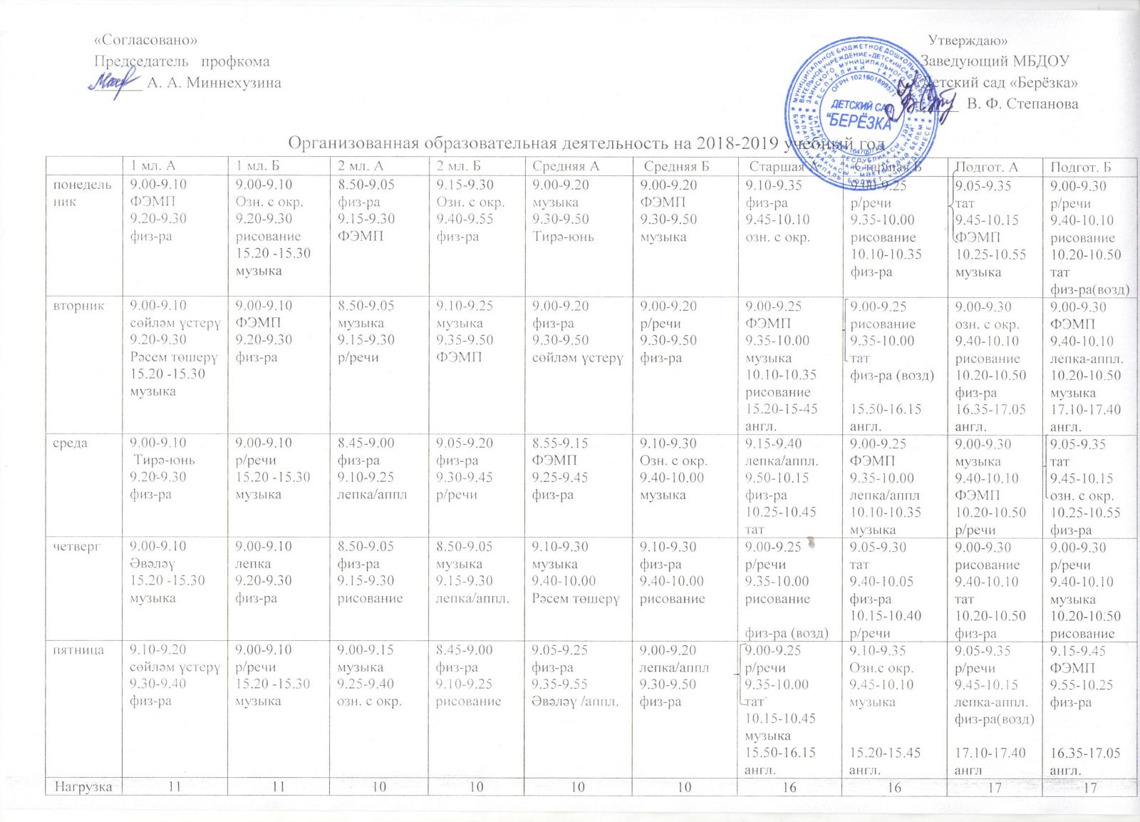 Организованная образовательная деятельность на 2018-2019 учебный год