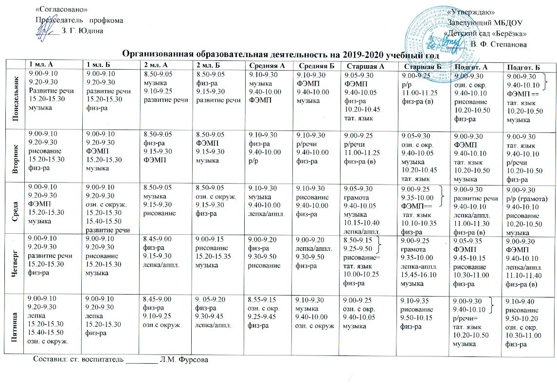 Организованная образовательная деятельность на 2019-2020 учебный год