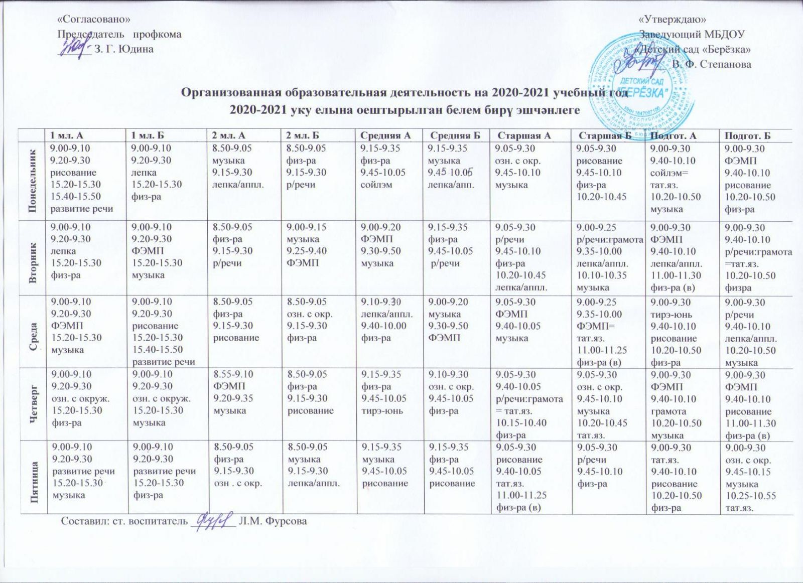 Организованная образовательная деятельность на 2020-2021 учебный год