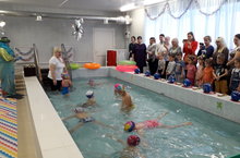 Торжественная лента перерезана, бассейн наполнен водой и ожидает своих первых посетителей. Возможность первыми спуститься в чашу бассейна получили воспитанники подготовительной группы. Ребят встретил Водяной, который решил вместе с детьми встретить Новый год. Веселые игры на воде не только подняли юным пловцам настроение, но и помогли ощутить всю прелесть водных процедур и возможности обучаться плаванию в нашем красивом, уютном бассейне. Дети других групп тоже не остались в стороне, пришли на экскурсию в новый бассейн вместе со своими воспитателями.