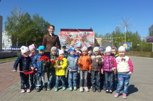 7 мая прошло развлечение, приуроченное ко Дню Победы!. Ребята пели песни, рассказывали стихи, отгадывали загадки, выполняли задания, за которые им давали детали большого конструктора из которых они, выполнив все задания, построили дом. Мальчики старшей группы исполнили военный танец. Воспитанникам были показаны видеоролики, рассказывающие о Великой Отечественной войне. Звучали песни военных лет. Ребята играли в разные игры: "Перенеси раненого на носилках", в качестве раненого была кукла, "Подбей танк врага" и другие. В конце развлечения все дружно спели главную песню победы.