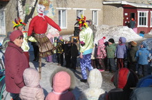 Закрути весь наш народ!Сегодня в нашем детском саду прошел традиционный праздник Масленица. Главной героиней праздника была, естественно, Масленица, воплощённая в чучеле. Это самый озорной и вкусный весенний праздник. А дети, как известно, лучше взрослых умеют радоваться и веселиться, особенно, если повод для веселья самый блинный праздник. В этот день ребята проводили зиму и встретили весну. В гости приходили скоморохи, Илья Муромец, Бабки Ежки. Праздник пршел очень весело. В завершении все угостились как заведено вкусными блинами и сожгли чучело Масленицы.