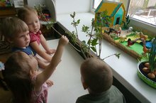Для наблюдения за весенними изменениями в жизни растений, воспитатели первой младшей группы вместе с детьми принесли в группу веточки сирени. Наблюдали в течение нескольких недель, как на веточках лопались почки, разворачивались листочки. И, вот в группе зацвела белая сирень. Дети почувствовали аромат весны. Малыши узнали, что для жизни растений тоже нужна вода, тепло и солнце.