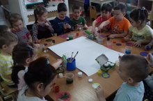 Воспитатель средней группы Константинова А.В. вместе с детьми провели необычное занятие по аппликации. Они приготовили большой красивый букет необычным способом. Занятия аппликацией способствуют, с одной стороны, формированию изобразительных умений и навыков, с другой — развитию творческих способностей детей, развитию воображения, фантазии. В своей работе особое внимание уделяю коллективной аппликации. Детей радуют коллективные занятия, их совместная деятельность по созданию аппликации. Особое удовлетворение им доставляет общий результат, который всегда богаче по содержанию, производит на них более яркое впечатление, чем индивидуально выполненная работа. В ходе коллективного творчества создаются условия для творческого взаимодействия детей, содействующие не только эстетическому и художественному развитию, но и формированию у них умений творчески работать в коллективе.
