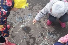 Как же были рады малыши что, наконец, выглянуло солнышко, и лужицы на дорогах высохли. Чем и воспользовалась, воспитатель Валиева Н.В., она организовала увлекательную прогулку с разноцветными мелками. Радостные малыши с удовольствием принялись за работу. При рисовании на асфальте ребята испытывают совсем другие ощущения, чем при работе карандашом и красками. Не важно, какой рисунок появился, важен сам процесс рисования, который доставил огромное удовольствие всем.