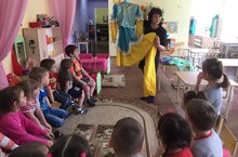 Большое влияние театрализованных игр на личность ребенка, на его развитие речи позволяет использовать их как сильное, но ненавязчивое педагогическое средство в изучении татарского языка. Ведь ребенок во время игры чувствует себя раскованно, свободно, даже не замечая, что занят очень важным делом. Так в подготовительной группе дети с помощью кукольного театра, отрабатывая игровую ситуацию «Син кая барасың?”, активизируют словарный запас.