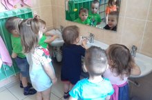 В детском саду у детей воспитываются: навыки по соблюдению чистоты тела, культуры еды, поддержания порядка в окружающей обстановке, а также правильных взаимоотношений детей друг с другом и с взрослыми. В процессе повседневной работы с детьми воспитатели младшей группы ежедневно стремиться к тому, чтобы выполнение правил личной гигиены стало для ребят естественным, а гигиенические навыки с возрастом постоянно совершенствовались. Чтобы облегчить ребенку освоение новых навыков, воспитатели делают этот процесс доступным, интересным, увлекательным, педагогически тонко и ненавязчиво. При этом учитывается возрастная особенность детей 2-го года жизни - стремление к самостоятельности.