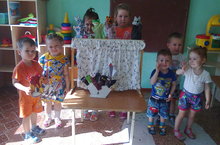 Утро в первой младшей группе началось с сюрпризного момента. Педагог Арсланова Р.И. обратила внимание детей, на то, что появились необычные игрушки - персонажи кукольного театра, ширмочка для настольного театра. Воспитатель пригласила побывать ребятам в волшебной стране сказок, а чтобы зарядиться силой, нужно сделать утреннюю гимнастику: дети изображали движения мышки и курочки из "Курочки Рябы", кошки и деда из "Репки", зайчика и мышки из "Теремка", поиграли в подвижную игру "У медведя во бору". В исполнении детей старшей группы, малыши посмотрели любимую сказку "Теремок". Настроение детей на целый день было наполнено положительными эмоциями. Ребята с удовольствием играли в театр, изображая любимых героев сказок. Игра в сказку учит детей видеть прекрасное в жизни и в людях. Любовь к сказке и театру остается у детей не только ярким воспоминанием из детства, но и ощущением праздника, проведенного в детском саду вместе со сверстниками и воспитателями.