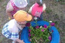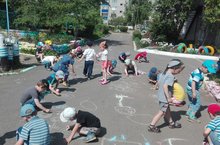 Один день лета ребята средней группы с педагогом Герасимовой О.Н. посвятили цветам. Ребята разучили стихотворение про одуванчик, совершили экскурсию по территории, запоминая названия цветов, растущих на территории детского сада и полюбовались их красотой. Под задорные детские песни ребята нарисовали цветочную поляну перед входом в детский сад.