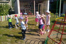 У детей дошкольного возраста ещё не большой опыт самостоятельной двигательной активности, многие движения находятся в стадии формирования. Поэтому воспитатель Стогова Л. А. ежедневно на прогулке уделяет большое внимание подвижным играм и игровым упражнениям с целью тренировки и закрепления двигательных навыков. Дети с удовольствием выполняют упражнения: ходьба по бревну, прыжки через скакалку, ползание и лазание. Не забывают и про игры с мячом - "Попади в цель", "Вышибалы". Помимо игровых упражнений на прогулке ежедневно проводятся такие подвижные игры как "Ручеёк", "Заморожу", "Такси". Время на прогулке для детей пролетает быстро, интересно и весело!