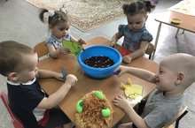 В нашем быту много интересных предметов, которые привлекают внимание детей: пробки, крышки, пуговки, пластмассовые бутылочки, прищепки… Для нас это просто необходимые вещи, а для ребенка они могут стать интересными игрушками. С целью развития мелкой моторики рук и изучения цветов в первой группе раннего возраста воспитатель Сиражиева В.И. провела образовательную деятельность "Иголочки для ежат". В гости к ребятам пришла мама ежиха и ежата, которые потеряли свои иголочки, когда играли в лесу. Дети с большим интересом помогли ежатам найти иголочки и прикрепить их. Иголочки были не простые, они были в виде прищепок, которые подходили к каждому ежику по цвету. Прищепки – это очень простой и доступный материал для развития малышей. С помощью прищепок можно развивать не только мелкую моторику, но и научиться различать цвета, считать, развивать фантазию, воображение.