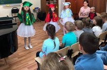Воспитанники cтаршей группы посетили музыкальную школу. Основной целью данного мероприятия являлось налаживание контактов между школой и детским садом, организация преемственности. Данная экскурсия реализовала несколько образовательных и воспитательных задач: знакомство дошкольников со зданием школы, с правилами внутреннего распорядка учреждения, экскурсия по помещению музыкальной школы Педагоги музыкальной школы и воспитанники показали ребятам концерт. Рассказали историю возникновению музыкальных инструментов. Дети присутствовали не только как зрители, но и как исполнители. Вместе с артистами пели песни.