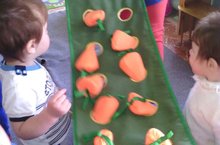 Необычные угощения для зайчат приготовили сегодня ребята. Воспитатель второй младшей группы Ковальчук И. А. решила познакомить своих малышей с новой игрой "Что растет на грядке?". Много радостных эмоций было в глазах малышей. "Прыгает ловко, любит морковку, кто это?", - спросила у ребят воспитатель. "Зайчик", - отвечали малыши. После чего дети сами самостоятельно сажали морковку. Восторгу малышей не было предела! Много моркови собрали с грядки. Зайчата будут довольны. Так через игру у малышей формируются первичные представления об объектах окружающего мира.