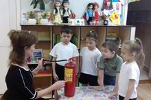 В течение недели воспитанники подготовительной группы закрепили знания о первичных средствах пожаротушения. Воспитатель Макурина Е.В. провела экскурсию к стенду пожарной безопасности детского сада, показала детям средства пожаротушения, объяснили их назначение. При проведении экспериментально – исследовательской деятельности дети узнали, чем можно тушить огонь, познакомились с предметами и материалами которые подвержены наиболее быстрому возгоранию, узнали о том, что пожары загрязняют воздух. Воспитатель активно использовала наглядные средства и пособия, необходимые для лучшего восприятия обучения, игрушки, имитирующую пожарную технику и пожарно-техническое вооружение (пожарные щиты, каски, огнетушители, рукава и т.д.) Обучение проходило в игровой форме, что способствовало привлечению внимания детей к поставленной задаче и в значительной степени, облегчало ее решение.