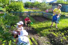 Дошкольное детство – начальный этап формирования личности человека, его ценностной ориентации в окружающем мире. В этот период закладывается позитивное отношение к природе, к «рукотворному миру», к себе и окружающим людям. Наличие огорода в детском саду способствует осуществлению непосредственного контакта ребенка с объектами природы. Огород так же расширяет представления детей о растениях, как живых организмах, об условиях необходимых для роста и развития, развивает эстетические чувства, умение радоваться красоте выращиваемых растений и результатам своего труда. Сегодня ребята старшей группы нашего детского сада очередной раз поливали, рыхлили землю и пропалывали грядки на своем участке. В результате все испытали большое удовольствие, а у детей появилась уверенность в своих силах и убежденность, что они делают настоящую большую работу, доставляя радость окружающим людям.