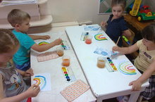 Одному из красивейших явлений природы были посвящены игровые мероприятия сегодня! Дети средней группы под руководством педагога Арслановой Р.И. познакомились с этим природным явлением, в ходе беседы учились рассказывать о своих впечатлениях о радуге, играли в дидактические игры "Соберем радугу!" и "Соберем цветик-семицветик!". Учились рисовать на темы "Радуга" и "Радужная история", участвовали в подвижных играх: «Цветные автомобили», «Солнышко и дождик», «Встань на свое место». Разучивали речевки о радуге.