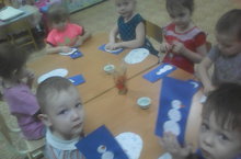 Вот и прошли новогодние праздники. Немного грустно стало детворе, чтобы подбодрить малышей и поднять им настроение воспитатель 2 младшей группы «Божьи коровки» Бормотина И. М. предложила ребятам из вырезанных фигур сделать аппликацию «Снеговичок». Целью занятия было научить детей наклеивать готовые формы (круги), в определенной последовательности учитывая их величину, закрепляя знания о величине, форме и цвете. Воспитывать аккуратность. Очень осторожно, аккуратно ребята раскладывали детали и приклеивали их на бумагу. Снеговички получились у всех веселые. Ребята показывали друг другу свои творения и весело смеялись. В ходе занятия отгадали загадку и познакомились с новой физкультминуткой «Снеговичок».