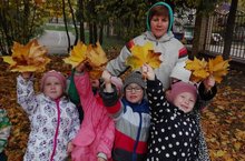 Сегодня ребята средней группы вместе с воспитателем И. А. Ковальчук гуляли в уголке леса нашего детского сада. Рассматривали яркие наряды деревьев. Слушали звуки и определяли, откуда они происходят. Поиграли в «Прятки» с обитателями уголка (медведем, зайцем и лисой). Особенно понравилось детям шуршание листвы под ногами, которая разноцветным ковром лежит под ногами. Дети большие фантазеры и придумали игру «Собери букет», в котором должны быть листья одного дерева, но с разной окраской. Все собирали букеты, и у каждого он был свой яркий, красивый и непохожий на букет соседа. Очень радостные ребята заходили в детский сад с осенними букетами-приветами. Но это уже друга история...