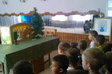 В нашем детском саду театрализованной деятельности всегда уделяется особое внимание. Все виды детского театра помогают сформировать правильную модель поведения в современном мире. Воспитатель по обучению родному языку Рамазанова А.Г. пригласила сегодня ребят старших групп в кукольный театр на встречу со сказкой. Ребята смотрели сказку «Теремок» на татарском языке. Вместе с персонажами всем известной сказки дети пели и танцевали. Кукольные герои вели диалоги с детьми на татарском языке, учили детей дружбе и взаимопониманию.