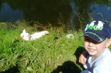 Подплывайте смело!Сегодня мы повстречали уточек на берегу речки в парке культуры и отдыха им. Р. Ш. Фардиева. Восторгу детей не было предела! Чудесные белые взрослые утки и маленький, с первого взгляда не заметный, серенький утёнок мирно грелись на солнышке на берегу возле воды. Дети с удовольствием покормили их хлебными крошками, наблюдали, как они поплыли, перебирая лапками. Как хорошо, что рядом с детской площадкой поселились такие малыши! В перерывах между детскими забавами на площадке ребята подбегали посмотреть, что делают утята. Весело и интересно провели время!