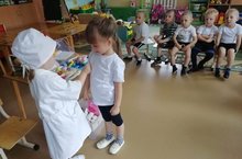 3 октября во 2 младшей группе проводилась сюжетно-ролевая игра «Больница». Воспитатель читала сказку К.И.Чуковского «Айболит», рассматривали иллюстрации по теме «Больница», «Аптека». Дети ознакомились с новыми словами: врач, градусник, фонендоскоп, таблетки, бинт. Игра получилась интересная, дети себя почувствовали в роли доктора Айболита.