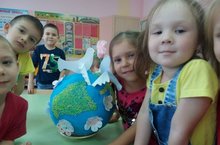В старшей группе воспитатель Мингазова Г.Н вместе с родителями и детьми принимала участие в акции «Территория мира», приуроченный к декаднику «Экстремизму - нет!» К участию в акции были привлечены и родители. Они вместе со своими детьми из папье -маше сделали земной шар. А в детском саду ребята на стикерах написали, как они понимают слово «Мир» и своими пожеланиями украсили земной шар.
