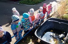 Сегодня воспитатель Тугашева Г.Х. с воспитанниками ясельной группы посетили маленький искусственный пруд с утками на территории детского сада. Малыши с большим восторгом и удивлением любовались и наблюдали за утками, издавали их звуки и характерные повадки. Рассматривали воду, как в ней плавают желтые, осенние листочки. Так малыши обогатили свои представления об окружающем мире.