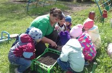 Уртанчылар төркеме балалары тәрбияче апалары белән уен мәйданчыгында бакча ясадылар: түтәлләргә укроп, петрушка, суган утырттылар. Алар җәй буе су сибеп, күзәтүләр алып барачаклар.