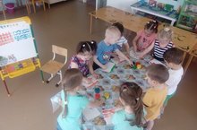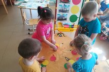 12 апреля воспитатель Самигуллина В.Р. с детьми 1 младшей группы провела интегрированное итоговое занятие на тему «Волшебное путешествие». Целью данного занятия было выявление уровня усвоения детьми программных задач. Развивать интерес к окружающему миру и познавательной активности. В ходе занятия дети вместе с воспитателем отправились на паровозике в волшебную страну. Там встретили кота, лису и петушка. Играли в пальчиковую игру «Кот на печке», музыкальную потешку «Петушок», дидактическую игру «Волшебные клубочки-гусеницы». Также воспитанникам была предложена крупотерапия - дети отделяли камушки от гороха и рисовали на тарелочках нетрадиционным способом «тычок» ватной палочкой горошки для петушка. За заботу и помощь петушок угостил деток сладостями.