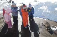 Сегодня, 25 марта, выйдя на прогулку, дети ясельной группы обратили внимание на кошку, которая забрела на территорию нашего детского сада. Дети увидели, как кошка навострила свои ушки, насторожилась при появлении ей незнакомых людей. Воспитатель рассказала детям, что кошка - домашнее животное, живет с человеком и нуждается в его заботе, предложила детям покормить кошку. Ребята притаились и внимательно наблюдали, как кошка кушает.
