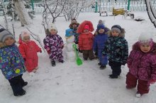 Сегодня дети ясельной группы на прогулке наблюдали за белым, мягким и пушистым снегом. Погода сегодня для лепки была самая лучшая, дети вместе с воспитателем слепили снеговика. Маленькие помощники были заинтересованы, каждый стремился даже горсточкой снега сделать снеговика самым веселым и красивым!