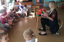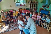 7 сентября в 1 младшую группу в гости пришел Доктор Айболит. Он поиграл с детьми в игру «Чудесный мешочек». Ознакомил детей с инструментами, необходимыми для врача. Дети все потрогали, экспериментировали, с удовольствием слушали. В конце беседы все дети получили витамины.