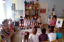 Сентябрьнең икенче атнасы “Кояшкай” бакчасында балаларга юл йөрү кагыйдәләре өйрәтүгә багышланган. Шул уңайдан уртанчылар төркеме балалары тәрбияче Мингазова Г.Н белән күрше төркемгә сәяхәт кылдылар. Анда балалар светофорның төсләре белән таныштылар һәм “Светофор” уены уйнадылар.