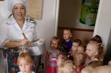 Воспитатель Демахина В.М. организовала экскурсию на кухню с детьми 1 первой младшей группы. Дети с удовольствием слушали рассказ поваров об их профессии. Они узнали, что каши, супы, компоты готовят им на кухне повара. Малыши поблагодарили поваров за вкусные каши и обещали, что будут кушать хорошо!