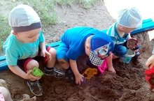 Песок - уникальный природный материал с замечательными качествами. Игры с песком благотворно влияют на нервную систему ребенка. Сегодня дети вместе с воспитателем Григорьевой В.Б. играли с песком, создавали картинки, фигурки с помощью трафаретов. Пусть эти фигурки совсем простые, но они требовали внимания и аккуратности. Дети с энтузиазмом строили и делились своими впечатлениями.