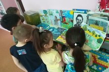 Һәр елны бөек шагыйребез Г.Тукайның туган көнен билгеләп үтәбез. Бүген 19 нчы апрель көнне өлкәннәр төркеме балалары белән, Г.Тукай эзләре буйлап сәяхәт кылдык. Шагыйрьнең әкиятләрен, шигырьләрен кабаттан искә төшердек, иллюстрацияләр карадык. Туган тел җырын өйрәндек. Төркемдә Тукай әсәрләренең күргәзмәсен оештырдык.