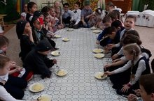 “Кояшкай” балалар бакчасы “Р.Ш. Фәрдиев исемендәге татар гимназиясе” белән тыгыз элемтәдә эшли. 25 нче апрель көнне гимназиянең 1нче “А” сыйныфы укучылары “Кояшкай”га “Карга боткасы” бәйрәменә кунакка килделәр. Бәйрәмдә балалар татар халкының җырларын җырладылар, биюләрен биеделәр, уеннарын уйнадылар. Өйдән-өйгә кереп, сый-хөрмәт җыеп, теләүләр әйттеләр. Балалар уйнаган арада, әби аларга төрле ярмалардан ботка пешерде. Бәйрәм ахырында барысы бергә җыелып ботка ашадылар. Дуслык боткасы бик тәмле булды!