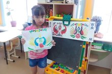 Мәктәпкә әзерлек төркеме балалары рәсем ясарга бик яраталар. Бүген алар, тәрбияче Гөлнур Наримановна белән, хохлома бизәге кулланып, кош рәсеме ясадылар, төрле милләт бизәкләре белән танышуны дәвам иттеләр. Балаларга бу бик тә ошады.