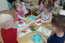 Сегодня воспитатель 1 младшей группы Тугашева Г.Х. провела занятие на тему «Вкусные картинки». Малыши сами выбрали себе картинку, которую будут закрашивать. Кто-то выбрал большую ягодку, кто-то помидор, яблоко, апельсин. Очень старательно рисовали, не марались. Малышам было очень интересно на занятии.
