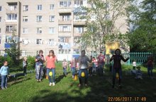 1 июль көнне Фәрдиев исемендәге ял паркында без – “Кояшкай” балалар бакчасы тәрбиячеләре: Гөлшат Әгъзамова, Венера Сәмигуллина, Гөлнур Минһаҗевалар Сабантуй мәйданына килгән балалар белән төрле кызыклы уеннар уйнадык. Без клоуннар киемендә идек. Бик күп балалар катнашты, рәхәтләнеп уйнадылар һәм һәрберсе төрле бүләкләр алды. Ә тәрбияче Гөлназ Әхмәдиева балалар белән кунакларга концерт номерлары күрсәтте.