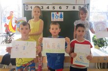 Мәктәпкә әзерлек “ Б” төркемендә тәрбияче Валеева Т.В. балаларга сәламәтлегендә кимчелекләре булган кешеләр турында сөйләде. Аларның безнең кебек үк кешеләр булуы һәм тирә – юньдәгеләрнең игътибарына мохтаҗ булуы турында мисаллар аша төшендерде. Соңыннан рәсем күргәзмәсендә җиңүче балаларның эшләренә нәтиҗә ясалды.