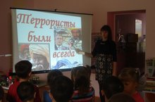 3 сентября 2015 года в старшей «Б» группе воспитатель Самигуллина В.Р. провела занятие посвященное «Дню солидарности в борьбе с терроризмом» на тему: Терроризм – это ненависть человека к человеку и всему человечеству». Целью этого занятия было научить детей противостоять опасности и защитить себя в экстремальной ситуации, формировать представление о мерах предосторожности и возможных последствиях их не соблюдения, о способах защиты от террористов. Воспитатель ставил задачу воспитывать у детей дружеские отношения к сверстникам и близким людям. В процессе занятия воспитатель использовала презентацию с наглядными картинками. Такой метод познания очень понравился детям, он был интересен и познавателен.